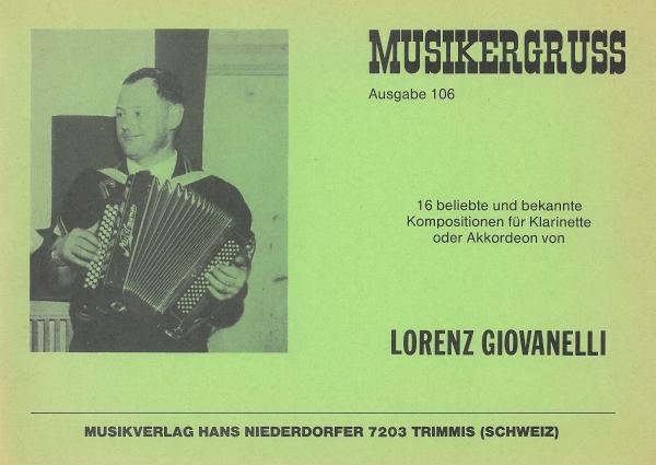 Akkordeonist, Sohn eines italienischen Bauführers, der noch vor dem Ersten Wehkrieg aus Mailand eingewandert und am Bau der Lötschbergbahnlinie tätig war. Aufgewachsen in Frutigen, übte er sich bereits während der Schulzeit im Handorgelspiel, teils nach Anleitung, teils durch Selbstunterricht. Nach einem Welschlandaufenthah arbeitete er als Käser, doch nötigte ihn die ungünstige Wirtschaftslage schon bald, sich nach einer anderen Betätigung umzusehen. Er ging zunächst bei der Stadtmühle Bern in die Lehre als Müller und übte nachfolgend diesen Beruf mehrere Jahre an verschiedenen Orten aus. 1932 hob er die Kapelle «Alpengruss» Frutigen aus der Taufe, deren Bezeichnung fortan in einem Zug mit seinem persönlichen Namen genannt werden sollte. Neben Giovanelli waren daran beteiligt: Hans Schmid, Handorgel, Walter Isler, Klarinette, und Johann Grossen, Bassgeige. An der Seite von Alfred Kölliker kamen 1934 als Handorgelduett die ersten Tonaufnahmen zustande. Bis zum Ende seines Lebens sollte er schliesslich die erstaunliche Anzahl von annähernd 500 Tänzen auf Schallplatten aufnehmen. Hatte er bis dahin sein Können einzig auf der diatonischen Handharmonika unter Beweis gestellt, so folgte er als Zwanzigjähriger dem Rat des Handorgelfabrikanten Ernst Salvisberg und lernte zusätzlich, abermals aus dem Stegreif, Akkordeon spielen. Dies kam ihm sehr zustatten, als er sich 1941 für die Berufsmusik entschied, weil ihm sein bisheriger Wirkungskreis angesichts der durch den Krieg ausgelösten Schwierigkeiten kein ausreichendes Einkommen sicherte. Während der zwei folgenden Jahre musizierte er vornehmlich in Bern, Zürich und Luzern, meistens zusammen mit den Brüdern Mauerhofer, Zäziwil. Nach dieser Zeit einer lebhaften musikalischen Tätigkeit fand er wieder zurück in seinen bürgerlichen Beruf, dem er nun über eine längere Zeitspanne hinweg im Appenzellerland nachging. Schliesslich ergriff er den Beruf eines Chauffeurs und arbeitete als solcher in Thun und Spiez. Seine Kapelle war nie eine Spielgemeinschaft von längerer Dauer; vielmehr formierte sie sich fortwährend neu. So spielten mit ihm um 1960 als fest zur Kapelle gehörend der Innerschweizer Emil Zwyer (1909-1986), Klarinette und Saxophon, der Frutiger Werner Büschlen, 2. Akkordeon, und Sepp Gehrig, Bassgeige. Auch die Klarinettisten Toni Amrein, Hubert Camenzind und Edy Keiser mögen hier als zeitweilige Partner genannt sein. Für Schallplattenaufnahmen zog Giovanelli jeweils nur erstklassige Kräfte zu, namentlich die beiden Bläser Kaspar Muther und Seppi Vogel. Aber auch Jost Ribary, Max Cerutti, Sebastian Kaufmann usw., ebenso die Akkordeonisten Paul Zimmermann und Arthur Brügger liehen ihm häufig ihre Unterstützung und hatten beträchtlichen Anteil an seinen Erfolgen. Ein Teil seiner etwa 150 eigenen Tänze ist in den Verlagen Ernedy, Stucki und Grossmann im Druck erschienen. Giovanelli, dem 1945 das Schweizer Bürgerrecht zuerkannt worden war, wohnte seit 1960 in Reutigen, nachdem er bis dahin - sieht man von seinen Wanderjahren ab - ständig in Frutigen gelebt hatte.Objekte