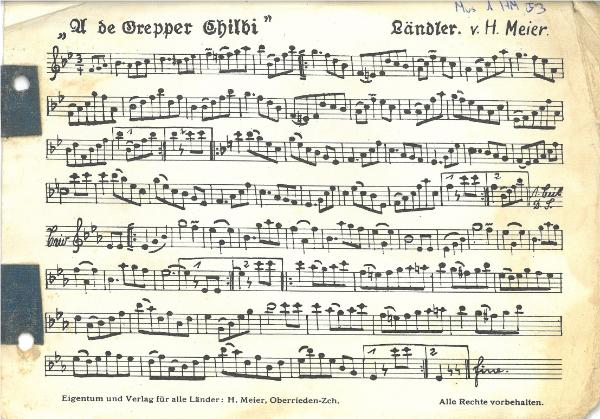 Klarinettist und Saxophonist, zählt zum Kreis der Musiker um Stocker Sepp und spielte als solcher eine wichtige Rolle in der Blütezeit der neueren Ländlermusik während der zwanziger und dreissiger Jahre. Sein Vater, ein Wagnermeister und Schwyzerörgeler, hatte ihm die Liebe zur Musik vererbt. Als ältestes einer Familie von vier Kindern früh Vollwaise geworden - die Mutter verstarb in seinem siebten Lebensjahr, der Vater sechs Jahre später - kam er als Verdingbub unter erträglichen Bedingungen zu einem Landwirt in Kost. Mit vierzehn Jahren zog er von Udligenswil im luzernischen Habsburgeramt weg und trat bei seinem Onkel in Affoltern am Albis in die Lehre als Schneider. Sein Lehrmeister und dessen vier Söhne, die Vettern Heiri Meiers, die alle im väterlichen Betrieb arbeiteten und nebenher zu musizieren pflegten, erkannten schnell das künstlerische Talent ihres Schützlings. Von seinem Prinzipal erhielt er denn auch die erste Klarinette und durfte auf dessen Kosten fünf Unterrichtsstunden besuchen, womit es allerdings sein Bewenden hatte. Um so eifriger bildete er sich allein weiter, und bald war er imstande, sich mit seinen Cousins in einer 4-Mann-Kapelle, bestehend aus zwei Klarinetten, Klavier und Bassgeige, zusammenzuschliessen. Da ausser den deutschen «Tonblumen»-, «Bismärkler»- und «Sylvedel»-Alben kein geeignetes Notenmaterial für Ländlerkapellen verfügbar war, machte er aus der Not eine Tugend und begann 1917 eigene Melodien aufzuschreiben. Sein Wirken als einer der bedeutendsten Ländlerkomponisten folgte somit anfänglich eher einem praktischen denn einem inneren Bedürfnis. Nachdem er seine Berufslehre beendet und eine Zeitlang in Interlaken als Schneider gearbeitet hatte, fand er 1920 in Zürich u.a. Kontakt zu Stocker Sepp, Sepp Müller und Roman Stadelmann, mit denen er zusammen musizierte. Einen weiteren Schritt zur Meisterschaft als Klarinettist bedeutete die Mitwirkung in der Stadtmusik «Eintracht» unter der Leitung on Max Boehm. Infolge der Wirtschaftskrise der zwanziger Jahre verlor er den Arbeitsplatz in seinem angestammten Beruf und musste sich mit Hilfsarbeiten in einer Fabrik für Zentralheizungen zufriedengeben, die er u.a. auch in Bern auszuführen hatte. Hier fand er Zugang zur «Genferstube», Berns führendem Ländlermusiklokal, schloss sich dem Akkordeonisten Gottfried Stucki an und spielte an dessen Seite in diesem Betrieb zu. nächst nebenher, dann hauptberuflich zusammen mit den Brüdern Drollinger und deren Kapelle «Edelweiss». Mit dieser Formation weihe er zwei Jahre lang auf Konzerttournee im Inland sowie in Berlin zu Aufnahmen für seine ersten Schallplatten. Einen Neubeginn bedeutete 1924 seine Übersiedlung für zwei Jahrzehnte an den Thunersee, wo er, wieder als Schneider beschäftigt, zuerst in Sundlauenen und später in Gunten lebte. Im Zuge der hier vorgenommenen Gründung der Kapelle «Fidelio» führte er als erster das Sopransaxophon in die Ländlermusik ein, das im Grunde die Trompete ersetzen sollte, und womit er besonders in Zürich als regelmässiger Gast innerhalb Stocker Sepps Ländlerkapelle grosses Interesse erweckte. Diese grundlegende Neuerung machte bei einer Vielzahl von Ländlerklarinettisten rasch Schule und erfasste auch das Spielgut, das sich nach den Gesetzmässigkeiten des Saxophons auszurichten begann und schon bald aus dem Jazz hervorgegangene Tanzarten wie Foxtrott und Slow-Fox miteinbezog. Meier ist dadurch zum wohl bedeutendsten Neuerer der Schweizer Volkstanzmusik geworden, wenn auch das Saxophon als Ländlerinstrument noch immer nicht über alle Zweifel erhaben ist und oftmals auf Ablehnung stösst. Setzte sich die Kapelle «Fidelio» anfangs aus Klarinette, zwei Handorgeln und Bassgeige zusammen, so erfuhr sie im späteren Verlauf durch Zuzug von Trompete und Posaune eine Erweiterung auf sechs Mann. Meier schrieb für sie sowohl die geeigneten Stücke als auch die Stimmen für die einzelnen Instrumente und entwickelte in dieser Phase eine fruchtbare Tätigkeit als Komponist. Die Aufritte mehrten sich nun: einerseits zusammen mit der eigenen Kapelle «Fidelio» in allen Teilen der Deutschschweiz sowie bei Konzerten in Paris und Berlin, anderseits als Stütze der Stocker-Sepp-Kapelle an der Landesausstellung 1939 in Zürich, bei Gastspielen in London, Florenz und Paris usw. Nach seiner Verehelichung 1940 mit der bislang bei Rudi Burkhalter, Akkordeon, beschäftigten Jodlerin und Bassistin Käthy Riederer zog er 1942 nach Oberrieden am Zürichsee, wo er gemeinsam mit seiner Gattin sowie Sepp Baumgartner, Handorgel, wieder eine Kapelle bildete und neuerdings als Schneider arbeitete. 1951 bezog er ein Eigenheim in Siebnen, widmete sich jetzt völlig der Herausgabe seiner Tänze im Selbstverlag, ferner dem Verkauf und Reparieren von Blasinstrumenten sowie dem Musizieren innerhalb seiner Familienkapelle, zu der, neben dem Akkordeonisten Karl Rusconi u.a., auch Tochter und Sohn gehörten. Vielfach wurde er auch weitherum als Kampfrichter für Wettspiele beigezogen. Seine nahezu sechzigjährige Musikerlaufbahn, die er an seinem fünfundsiebzigsten Geburtstag abschloss, ist nicht weniger beachtenswert als das umfangreiche kompositorische Schaffen. Dasselbe zählt über 500 Tänze, worunter sich eine Vielzahl durch Originalität und Unverwüstlichkeit auszeichnet, so etwa «Zur Abfahrt bereit», «Klänge vom Pilatus», «Sternenklar» usw., teils in den dreissiger Jahren von Stocker Sepp, teils später von ihm selbst verlegt. Heiri Meier starb nach kurzer Krankheit mit beinahe 84 Jahren im Spital von Lachen; unter grosser Anteilnahme wurde er in Siebnen zu Grabe getragen.Objekte