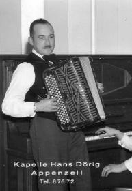 Akkordeonist, dessen Vorfahren väterlicherseits vortreffliche Sänger und Jodler waren, kam als Sohn eines Strassenmeisters zur Welt, der nebenberuflich das Amt eines Glöckners an der Kirche in Appenzell bekleidete. Während die drei Geschwister Hans Dörigs das Musizieren auf Saiteninstrumenten pflegten, fand er im Volksschulalter Zugang zur Handharmonika. Seine Mutter hiess Ursula, darum erhielt er den Spitznamen „Ursele-Hans“. Nach Abschluss der Lehre als Coiffeur lernte er mit zwanzig Jahren Akkordeon spielen, trat aber erst 1948 an der «Olma» in St. Gallen öffentlich als Musiker in Erscheinung. Ermuntert durch den Publikumserfolg entschloss er sich, Berufsmusiker zu werden, wozu er ein Trio formierte, das regelmässig in den damaligen Unterhahungslokalen arbeitete, etwa zusammen mit Heidi Bruggmann im ehemaligen Restaurant «Landidörfli» in Zürich 4. Dabei kam ihm auch das von seinen Vätern ererbte Gesangstalent zugute, von dem er beim Vortrag der gängigen Schlager und jodelartigen Stükke ausreichend Gebrauch machte. Er liess sich 1955 in Zürich nieder, wurde aber 1970 wieder an seinem Geburts- und Heimatort sesshaft, wo er nach wenigen Jahren unerwartet starb. Er verstand es, seine rund zwei Dutzend gefälligen, einfachen Appenzellertänze, erschienen in den Verlagen Helbling und Jacques Huber, auf eine sehr persönliche und gewinnende Art darzubieten und damit Appenzeller-Eigenart in weiten Kreisen der Bevölkerung bewusst zu machen. Einen unerwartet grossen Erfolg erzielte Hans Dörig mit seiner Kapelle (Albert Neff und Louis Moser) am 1. eidg. Ländlermusikfest in Sargans am 6. Juni 1971 (300 Kapellen). Für die vorgetragenen Stücke „en Öserigs“ und „Im Pöschtli z Appezöll“ erhielt er als Gesamtnote 9.1 Punkte. Diese beiden "Erfolgsstücke" erfreuen sich noch heute grosser Beliebtheit.Objekte