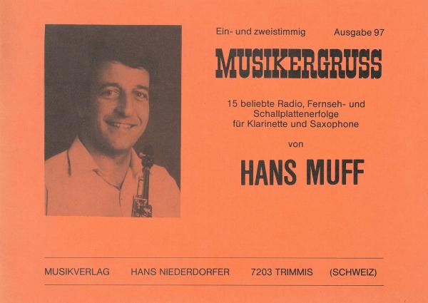 Klarinettist/Saxophonist, zählt zur breiten Spitze der jüngeren virtuosen Bläser der Gegenwart. Aufgewachsen in Twerenegg/Menznau als Bauernsohn, erwarb er sich sein musikalisches Rüstzeug hauptsächlich während einer zehnjährigen Zugehörigkeit zur Feldmusik Menznau, der er mit vierzehn Jahren beitrat. Erste Beziehungen zu verschiedenen Ländlerformationen unterhielt er ab 1961, wobei er sich Kapellen wie «Heimelig», «Seeburg» u.a. zugesellte. Bedeutung als Bläser gewann er indessen erst 1967 mit der Gründung der eigenen Kapelle «Hans Muff», worin ihn Seppi Kaufmann, Akkordeon, A1phons Lustenberger, Klavier, und Jean Thal. mann, Bassgeige, musikalisch unterstützen. Diese Formation, zu der 1976 als fünfter Mann der Bläser Seppi Glanzmann stiess und die auch anderweitig wiederholt umbesetzt wurde, zeichnete sich vielfach an Innerschweizer Wettspielen und folkloristischen Anlässen im Ausland aus. Ausserhalb seiner Stammkapelle stellt sich Muff auch gemeinsam mit anderen Spitzeninterpreten wie Valotti, Schilliger und Brunner auf der Bühne, am Fernsehen und auf Schallplatten vor. Eine Spezialität bildet ferner seine Grossformation von zehn Mann, die populäre Tanz- und Unterhahungsmusik darbietet. Muff, von Beruf Verkaufsberater und Musikproduzent, ansässig in Twerenegg, hat bis dahin rund 80 Tänze komponiert, die in Verlagen wie Niederdorfer, Lustenberger usw. erschienen sind. 1967 gründete er seine eigene Ländlerkapelle, die seit 1998 Kapelle Hans & Claudia Muff hieß und den konzertanten Innerschweizerstil pflegte. Hans Muff wurde von seiner Tochter Claudia am Akkordeon begleitet. Der traditionsbewusste, aber auch experimentierfreudige Kapellmeister konnte auf viele Erfolge zurückblicken. Die Musik war für ihn als Produzenten zum Beruf geworden. Muff starb am 2. Juli 2015 im Alter von 70 Jahren nach längerer Krankheit.Objekte