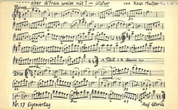 Der als Bauernsohn in Littau und Luzern aufgewachsene Virtuose, der neben Jost Ribary viele Jahre als der herausragende Ländlerinterpret und -komponist galt, machte sich nach Schulabschluss zunächst im elterlichen Landwirtschaftsbetrieb auf dem Stollberg und der Hermitage nützlich. Musische Anlagen lassen sich bei keinem seiner Vorfahren nachweisen. Die Freude am Klarinettenspiel erwachte in ihm mit vierzehn Jahren, ausgelöst durch die Lust am Musizieren seines 1956 verstorbenen Bruders Peter, der Handorgel spielte. Der Luzerner Sebastian Kaufmann, von Beruf Dienstmann, oft im Stadt- sowie Theaterorchester als erster Klarinettist beschäftigt, unterrichtete ihn zu Anfang. Auf dessen Rat besuchte er während dreier Jahre Kurse an der städtischen Musikschule Luzern. Abgerundet wurde seine musikalische Ausbildung durch die Mitwirkung in der dortigen Stadtmusik, der er sich als Siebzehnjähriger anschloss und welcher er sechs Jahre angehörte. Etwa zur selben Zeit als er diesem Verein beitrat, begann er sich auch für die Ländlermusik zu interessieren, die er alsbald an der Seite seines Bruders und eines Bassisten ausübte. Den Auftakt bildete ein Engagement der «Mutherbuebe» im Hotel «Ochsen» in Luzern, wo er bereits den «StollbergSchottisch» darbot, einen seiner berühmtesten Tänze, den er mit achtzehn Jahren komponiert hatte. Für die Marke «His Master's Voice» bespielte er 1930 in Luzern die ersten Schallplatten, unterstützt von Sebastian Kaufmann, Peter Muther, Otto Würsch Vater und Sohn sowie Franz Kunz. Nach diesen erfolgreichen Anfängen mehrten sich die Auftritte zusehends, wodurch bald einmal die Zürcher Ländlerprominenz auf den vielversprechenden Jungbläser aufmerksam wurde und ihn in die Limmatstadt beorderte. Eine enge musikalische Verbindung ging er hier mit Stocker Sepp und Walter Wild ein, in deren Formationen er meistens anzutreffen war, wovon alte Schellackplatten zeugen, aufgenommen mit Walter Wild in Paris 1934. Weitere Aufnahmen, so in Berlin, liessen nicht lange auf sich warten. Wiewohl er längst die Stufe eines ausgebildeten Musikers erreicht hatte, verrichtete er beruflich noch immer Landarbeit auf dem «Stollberghof» seiner Eltern. Dies änderte sich mit einemmal, als Robert Barmettler sich 1937 für die Berufsmusik entschied und Muther nebst Omlin, Ney sowie dem allzeit heiteren Bassisten und Gitarristen Jakob «Giacomo» Wiget in seine Kapelle berief. Dass der Luzerner in dieser Umgebung der Schlager- und Stimmungsmusik seinen Tribut zolle, konnte nicht ausbleiben. Einen weiteren Schritt hin zu modernen Rhythmen, denen er sich gar als Schlagzeuger verschrieb, bedeutete die darauffolgende Zusammenarbeit mit den professionellen Unterhaltungsmusikern Emil Moser, den Brüdern Parmigiani und dem Luzerner Akkordeonisten Franz (Harry) Meyer anfangs der vierziger Jahre. 1948 pachtete er, unterstützt von seiner Gattin, das Restaurant «Bauernhof» in Goldau, ohne deswegen die Berufsmusik in Luzern und Zürich aufzugeben. In der Gründung und Leitung der Bauernmusik Goldau fand er einen Ausgleich zum täglichen Konzertbetrieb. Vollends weg von der Ländlermusik führte schliesslich sein Eintritt in ein modernes Ensemble zu Beginn der fünfziger Jahre, womit er sich viel Kritik in volkstümlichen Kreisen einhandelte. Wozu er aber in seiner ureigenen Sparte noch immer fähig war, bewies er im bereits vorgerückten Alter an der Spitze der 1959 von ihm u.a. gegründeten Kapelle «Heirassa», die bis zu ihrer Auflösung im Jahr 1980 geradezu als Markenzeichen für modulationsreiche, konzertante Volksmusik galt. Umgeben von ihm ebenbürtigen Solisten, wie Walter Grob, Alois Schilliger, Willi Valotti usw., erreichte er erst jetzt den Gipfel seiner Karriere, die er 1968 mit einer USA-Tournee der Kapelle «Heirassa» (wiederholt 1969) krönte. Zuletzt spielte er mit einer eigenen Formation, der u.a. der Akkordeonist Very Steffen angehörte. Er lebte seit 1960 in Rothenburg. Sein unerwarteter Tod, der ihn durch einen Herzschlag in Luzern ereilte, und die anschliessende Beisetzung in Hergiswil, lösten in Ländlerkreisen Betroffenheit aus. Muther hinterliess rund 500 in der Mehrzahl virtuose Tänze von hohem Schwierigkeitsgrad, erschienen in den Verlagen Hans Roschi und Emil Lustenberger. Sein exaktes und schmissiges Spiel ist überdies auf ungezählten Schallplatten und Studiobändern festgehalten.Objekte