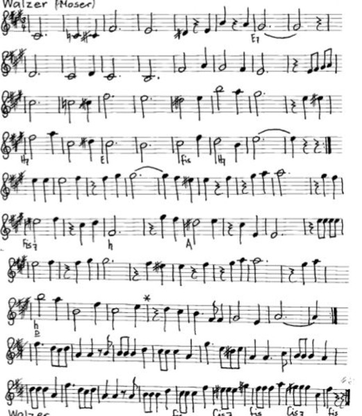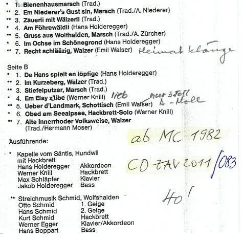 Zusammenspiel mit "Alperösli" (1. Geige), Knechtle Josef, Gemsli Weissbad. Sohn des "rote Moser", Appenzell. übernahm 1921 anstelle seines verstorbenen Vaters als 1. Geiger die Leitung des Streichquintetts Appenzell. Er widmete sich ausserdem der ernsten Musik und unterrichtete u.a. Violine am Kollegium in Appenzell. Schon als 11-jähriger Bub musste er mit seinem Vater an Reestagen in Tanzsälen Hackbrett spielen. Später, als den Lehrern Wild und Rohner das Klavierspielen in Tanzsälen untersagt worden war, musste er auch dieses Instrument erlernen. Als Meister des Violinspiels wirkte er viele Jahre als Musiklehrer am Kollegium. Mitglied des Kirchenorchesters. Moser machte Tanzmusik in den Jahren 1902-1951). Letztmals zu Hause gespielt 1960. s. dazu Geschichtsblätter Bezirk App. Nr. 222179.Objekte