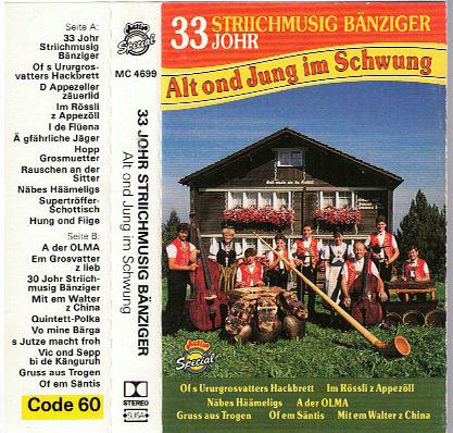 Die Streichmusik Bänziger wurde 1957 gegründet; in den Jahren 1969-1979 existierte sie unter dem Namen "Streichmusik Bänziger-Hornsepp". Nach personellen Änderungen spielen seit 1988 die "Bänziger-Buben" in der Formation mit. Diese setzt sich wie folgt zusammen: Matthias Bänziger (Bass) Adrian Bänziger (Geige) Ernst Bänziger (Cello) Hansueli Bänziger (Geige) Werner Knill / Walter Tanner (Hackbrett)Objekte