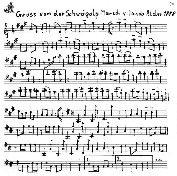 Sohn von Ulrich Alder, des Mitgründers der Urnäscher Streichmusik. Er trat dieser Formation 1910 bei, verliess sie im folgenden Jahr aus Glaubensgründen, spielte indessen ab 1922 wieder mit, um danach bis zu seinem Tode als ihr vielseitigster Musiker die führenden Rollen zu übernehmen. Im Umgang mit 14 verschiedenen Instrumenten bewandert, spielte er in der Streichmusik zumeist Cello. Als flinker Notenschreiber wies er sich im Komponieren über einen grossen Einfallsreichtum aus, erkennbar am Beispiel seines Marsches "Hoch vom Säntis". Dazu diente ihm eine eigenen Notenkurzschrift, die später "Alders Jock", den er ausbildete, übernahm und weiterentwickelte. Zu seinen Schülern zählte ebenfalls der Hackbrettspieler Emil Zimmermann. Der Beruf des Klavierstimmers und der Handel mit Musikinstrumenten beanspruchten ihn gleichermassen wie die Landwirtschaft und die Tätigkeit eines Versicherungsagenten. Mit den Blasinstrumenten bestens vertraut, leitete er zudem vorübergehend die örtliche Dorfmusik.Objekte