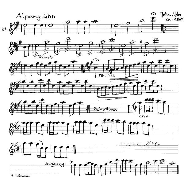 Bruder von Ulrich Alder (später Urnäsch-Widenbach), Kleinbauer, übernahm 1896 das elterliche Heimwesen, daneben zweitweise Weber, wie meist auch seine Geschwister und Nachfahren. Das Musikgehör hatte er von der Mutter geerbt, die Mundharmonika spielte. Währen ihn Johannes Näf ("Urechebuebe Hannes" 1819-1887) das Violinspiel lehrte, verfeinerte er seine Spieltechnik durch Anhören der Innerrhoder Ignaz Dörig, Gebrüder Moser und Anton Maria Klarer. Ihrem Beispiel folgend, gründete er 1884, nachdem er zuerst an der Seite seines Lehrmeisters aufgetreten war, zusammen mit Ulrich Alder, Johann Jakob Keller und Johann Jakob Hug die Urnäscher Streichmusik. Als fünfter Mann trat einige Jahre später hinzu der Bassist Jakob Weiss (1869-1952, Stein AR), von Beruf Weber, der bis 1937 mithalf. In dieser frühen Phase nahm die Formation u.a. 1898 an er Einweihung des Landesmuseums in Zürich teil. 1909/10, als bereits die zweite Generation der Alder mithielt, fanden Konzerte in Luzern, Ragaz, Lausanne, Ulm und Stuttgart statt. Johann Alder stellte das Musizieren 1922 ein.Objekte