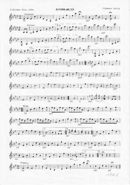 "Wo bist du aufgewachsen? Wo ist dein gegenwärtiger örtlicher Lebensmittelpunkt? Geboren bin ich auf der Göscheneralp, zu einer Zeit, als der Kraftwerkstausee noch nicht bestand. Unser Heimet befand sich auf dem jetzigen Seegrund. Als ich sechs Jahre alt war, zog dann unsere Familie wegen des Kraftwerkbaus nach Kägiswil, wo ich seither wohnhaft bin. Gelernte(s) Instrument(e)? Was spielst du regelmässig bei deinen Auftritten? Ich spiele Mundharmonika, Mandoline, Bassgeige, Miniörgeli, Klavier, Flöte und Hackbrett. Mein Hauptinstrument ist aber das Akkordeon. In welchem Alter, wo, bei wem hast du gelernt? Als ich achtjährig war, begann ich mit dem Musizieren. Die Instrumente lernte ich autodidaktisch im Selbststudium. Warum wolltest du Volksmusik spielen? Mein Vater spielte Schwyzerörgeli für den Hausgebrauch. In unserer Familie war die Begeisterung für die Volksmusik gross, somit wurde mir die Freude an der Ländlermusik in die Wiege gelegt. Wann und wo (bei welchem Anlass) hattest du deinen ersten öffentlichen Auftritt? Meinen ersten Auftritt hatte ich an einer Hochzeit im Restaurant Adler in Kägiswil. Mit wem spielst du gegenwärtig regelmässig zusammen? Namen? Besetzung? Namen der Formation(en)? Meine Stammformation ist die Kapelle „Edy Wallimann-Clemens Gerig“. Wir spielen seit 1978 zusammen und feierten 2018 unser 40-jähriges Jubiläum. Am Klavier und Bass spielen zurzeit verschiedene Musikanten aushilfsweise in der Kapelle mit. Hast du schon früher regelmässig in Formationen mitgewirkt? Namen der Formation(en)? Zeitraum (von-bis)? Namen der MitspielerInnen? Besetzung? • Von 1962 bis 1977 spielte ich am Klavier bei der Kapelle Sunnähuisli Alpnach. Die Mitspieler waren Sepp und Edy Wallimann (klar), Walti Gerig (akk) und Hermi Michel (kb). • In den 70er-Jahren spielte ich als Aushilfsakkordeonist oft mit Kari Hurschler und Hansruedi Kuster von Engelberg. • Anfangs der 70er-Jahre war ich ein Jahr als Aushilfsakkordeonist bei der Kapelle Josef Feierabend von Engelberg. • Zwischen 1977 und 1978 spielte ich ebenfalls aushilfsweise mit der Kapelle Waldhüsli Alpnach. • Zwischen 1983 und 1990 musizierte ich mit dem Handorgelduo Gebrüder Gerig, Kägiswil. Die Besetzung war: Mein Bruder Walti und ich (akk), entweder Heidi Michel oder mein Sohn Ueli Gerig (p) und Hermann Michel (kb). Mit dieser Formation treten wir heute noch ab und zu auf. • Besondere Freude bereitete mir immer wieder das Musizieren mit meinen Söhnen. Auftritte in der Öffentlichkeit gab es eher weniger. Aber als Erinnerung an die schöne Zeit sind zwei Tonträger entstanden. Hast du musikalische Vorbilder? Wenn ja, welche sind das? Als ich jung war beindruckten mich die Kapelle Waldhüsli Alpnach, die Kapellen Hans Aregger und Heirassa, die Handorgelduos Bucheli-della Torre und Betschart-Rogenmoser. Gibt es Besonderheiten in deiner Spielart? Gibt es z.B. eine bevorzugte Stilart (z.B. Illgauer-, Berner-Stil, konzertante Musik, Stimmungsmusik usw.)? Spielst du mehrheitlich vor oder begleitest du lieber? Ich spiele sowohl gerne urchig als auch konzertant. Als Akkordeonist spiele ich je nach Besetzung vor oder die Begleitstimmen. Bei welcher Art von Anlässen bist du mehrheitlich am Spielen? Unterhaltungsanlässe, Konzerte, Jodlerabende, Schwingfeste, usw. Gab es schon Auftritte, die einen besonderen Stellenwert für dich haben? Besonders in Erinnerung geblieben sind mir Kreuzfahrten um die halbe Welt, bei denen unsere Kapelle musizieren durfte. Gerne erinnere ich mich aber auch an die Feier zur Übergabe des „goldenen Violinschlüssels“ an Edy Wallimann. Aber auch an die Auftritte am „Heirassa Festival“ in Weggis habe ich schöne Erinnerungen. Gibt es interessante, lustige Episoden aus deinem musikalischen Leben? Es käme da einiges zusammen, aber lassen wir das! Hast du schon Auszeichnungen, Ehrungen, Preise gewonnen? Wenn ja, welche? Am Kompositionswettbewerb, anlässlich des Jubiläums „10 Jahre Sporthotel Stoos“, erreichte meine Komposition den 4. Rang. Am Kompositionswettbewerb, anlässlich des eidg. Schwingfestes 1989 in Stans, kam ich auf Rang 5. 1979 konnte ich am Kompositionswettbewerb die „kleine Heirassa Glocke“ entgegen nehmen. Komponierst du auch? Über all die Jahre sind an die 300 Melodien entstanden."Objekte