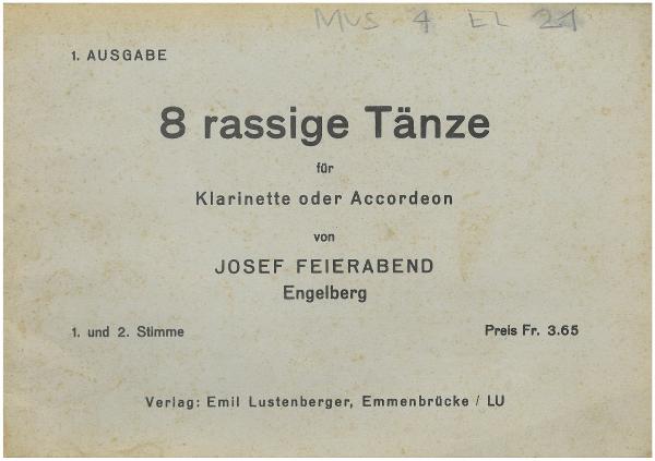 Sohn von Franz Feierabend. Sein Geburtshaus ist das Restaurant «Zum Wasserfall», seit eh und je Treffpunkt der Ländlermusikanten, wo er mit vierzehn Jahren seinem Vater nachzueifern begann und das Spiel auf der chromatischen Handorgel nach Gehör erlernte. Schon bald musizierte er entweder allein oder am Klavier begleitet von seinem Bruder Franz zum Tanz. Musikalischen Umgang pflegte er bisweilen auch mit anderen Spielern, die sich im elterlichen Gasthaus einfanden, so etwa mit Remigi Blättler. 1938 wählte er anstelle der Handorgel die Klarinette zum Hauptinstrument und eignete sich zu deren Studium die Kenntnis der Notenschrift an. Nach der Schule hatte er zuerst im bäuerlichen, dem Restaurant zugehörigen Betrieb seiner Eltern harte Arbeit verrichtet, worauf er sich ein Jahrzehnt lang auf der Fürrenalp mit dem Sömmern des Viehs abgab. Dazwischen fand er immer wieder zurück zur gemeinsamen Musikausübung im häuslichen Kreis mit seinem Vater, seinem Bruder Franz und dem Akkordeonisten Friedrich Häcki. 1944 übernahm er von seinem Vater die Wirtschaft. Zum Freundeskreis zählten danach die Brüder Hans und Oskar Della Torre, mit denen er zusammen ein Musiktrio bildete, besonders aber der Bläser und Briefbote aus Engelberg Hans Kuster (1920-1964), sein Schwager. In der Formation «Kuster-Feierabend» zeigte er sich denn auch ausgangs der fünfziger Jahre auf der Höhe seines Könnens, wie es die 1959 erschienene, dem Schaffen Kasi Geissers ge, widmete Decca-Langspielplatte bezeugt. Ein Grosser, der Josef Feierabend für sein vorzügliches Gehör Lob zollte, war Jost Ribary senior, der vielmals im Gasthaus «Wasserfall» zum Klarinettenwettstreit mit dem Engelberger antrat.Objekte