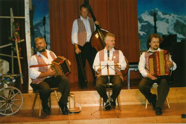 "Instrumentale Besetzung? Klarinette, Akkordeon, Klavier und Bassgeige. Wie kam es zur Formationsgründung? Evtl.: Warum wurde die Formation aufgelöst? Nachdem der Kapellmeister Alois Niederberger in jungen Jahren die ersten musikalischen Erfahrungen mit verschiedenen Musikanten gesammelt hatte, gründete er zusammen mit seinen Nachbarn die Kapelle Edelweiss, Alpnach. In den beiden Bergbauernfamilien Niederberger und Kiser wurde die Volksmusik gepflegt und geliebt. So lag es auf der Hand, dass die jungen Volksmusikanten zu einer Ländlerkapelle zusammenfanden. In dieser Besetzung spielte man bis zur Auflösung der Kapelle im Jahre 1971. Welches sind/waren die Gründungsmitglieder? Welche Musikerinnen und Musiker sind/ waren Formationsmitglieder? Zeitraum der Mitgliedschaft? Am Akkordeon spielte der Kapellmeister Alois Niederberger. Die anderen Instrumente wurden von den Brüdern Kiser gespielt. An der Klarinette und am Sopransaxophon spielte Paul, am Klavier war Wisi und am Bass Sepp. Vorbild-Formationen? Zu ihren Vorbildern gehörten die damals bekannten Ländlerkapellen Heirassa, Edi Bär, Jost Ribary, usw. Besonderheiten in der Spielart? Gibt es z.B. eine bevorzugte Stilrichtung (z.B. Illgauer-, Berner-Stil, konzertante Musik, Stimmungsmusik usw.)? Es wurde in der traditionellen Innerschwyzer Besetzung mit Klarinette, Akkordeon, Bass und Klavier gespielt. Je nach Anlass und Publikum hatte man auch Stimmungsmusik im Repertoire. Besonderheiten im Repertoire? Gibt es z.B. bevorzugte Komponisten, Taktarten, usw.? Neben verschiedenen Komponisten wurden oft Kompositionen von Kaspar Muther und René Wicky gespielt. Bei welchen Anlässen spielt(e) die Formation mehrheitlich auf? Oft trat man an Tanz und Unterhaltungsanlässen, an der Fasnacht oder Kilbenen auf." Diese Informationen wurden im Rahmen des Projekts "Die instrumentale Unterwaldner Volksmusik-Landschaft" erarbeitet.Objekte