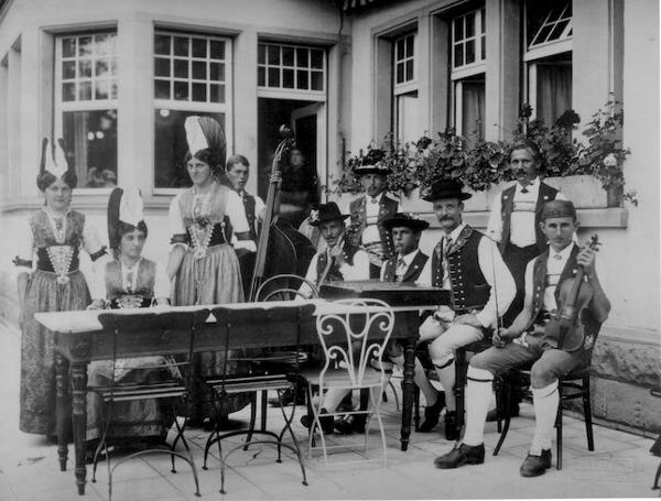 Noldi war ein Original, überall beliebt und hatte ständig eine Toscanini im Mund. Es war eine Freude mit Ihm zu spielen. In jungen Jahren muss er ein guter Hackbrettler gewesen sein, man weiss aber nicht mit wem er früher gespielt hatte. Zusammenspiel mit Franzsepp Inauen. Spielte das Hackbrett in den Heimatspielen, "De Frede ha" etc. Spielzeit ca. 1918-1950. Bassgeige im Landifestspiel 1939. Foto: A 032, 035, 062 Ab 1953 war er immer der Bassgeiger, schnell bereit zum spielen. Er verfügte offenbar über eine gute Kondition, was bei den damals sehr langen Anlässen sehr wichtig war. 1954 spielte Noldi Schnider in der Gruppe mit Hans Fuchs und Albert Knechtle (Akkordeon), Noldi Schnyder (Bass) und Karl Fuchs (Klavier). Laut Aussagen von Karl Fuchs hatten sie damals keinen offiziellen Namen. Es war normal, dass jeder spielte wo ein Musikant gebraucht wurde. Ca. 1957/58 durften Albert Knechtle / Karl Fuchs (Handorgel) und Noldi Schnider am Bass. an der Meglisalpstobete spielen, was offenbar ganz schön viel Ausdauer verlangte. (Beginn Sonntag Mittag bis ca. 02.00 Uhr / anderntags wieder von 09.00 - ca. 16.00 Uhr). Offenbar hatten Sie ein Zimmer mit drei Betten, Noldi ging nach dem Cherab bald einmal zu Bett, Albert und Hans tranken noch etwas. Als sie dann ins Zimmer kamen, lag Noldi glücklich schlafend im Bett und hatte immer noch die Toscani im Mund. Dank der guten Beziehungen zu der Wirtefamilie bekamen sie für ungefähr 20 Stunden Musik machen den Spitzenlohn von Fr. 60.-- pro Nase. Es folgten noch viele Auftritte mit dem liebenswerten und unkomplizierten Noldi. Noldi Schnider war verheiratet und wohnhaft gewesen im Brugghüsli Weissbad. Ab 1965 bis zu seinem Tode wohne er mit seiner Frau Katharina Koster bei ihrer Tocher Cäcilia im neuen Haus an der Trieberenstrasse/Loosböhli in Weissbad. 1953 heiratete Hans Fuchs , Maria Schnider, die Tochter von Arnold Schnyder. Sie hatten zusammen zwei Töchter (Maria und Elisabeth Fuchs, wohnhaft in Goldach).Objekte