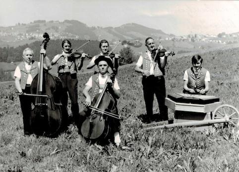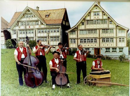Eltern: Hans (1916) und Alice (1920) Schmid-Kellenberger Geschwister: Otto Schmid Die Musikantenlaufbahn der Gebrüder Schmid begann schon früh. Musiklehrer war ihr Vater (Hans Schmid). Als Otto 7 Jahre alt wurde, bekam er eine Kindergeige zum Geburtstag. Fast jeden Tag wurde geübt. Der Vater war stolz, seinen Buben das Geigespielen beizubringen; dies war mit täglichem Üben verbunden, was den Buben nicht nur immer Freude bereitete. Mit 10 Jahren durfte Kurt bei Frau Brüssel in Walzenhausen Klavierunterricht nehmen. Weil er aber vor allem Klavierbegleitung erlernen wollte, hat ihm Emil Fürstenauer in Gais dann die ersten Grundkenntnisse vermittelt. Damit war die Hauskapelle geboren (Geige: Vater und Otto / Klavier: Kurt). Etwa um 1962 kam Karl Schmid aus Oberegg als Bassist in die Kleinformation. Der erste Auftritt war an einer Turnerunterhaltung in Wolfhalden 1963. Als Kurt 15 Jahre alt war, kaufte der Vater bei Hans Rechsteiner in Trogen ein Hackbrett. Im Selbststudium erlernte Kurt das Spielen. Nach dem Ausscheiden von Karl Schmid konnte der fehlende Klavierspieler durch Werner Egger, Speicher ersetzt werden. Über 20 Jahre war dieser dann der Begleiter (Akkordeon oder Klavier). Ergänzt wurde die Formation durch den Bassisten Hans Boppard aus Rorschach. So trat die "Streichmusik Schmid, Wolfhalden" in der 4. Generation erfolgreich im In- und Ausland auf. Um das Jahr 1992 ist die 5. Generation Schmid nachgerückt unter dem Namen "Streichmusik Schmid, Walzenhausen". Hobbys: Notenschreiben. Was sein Vater bücherfüllend getan hat, macht Kurt nun mit dem Computer.Objekte