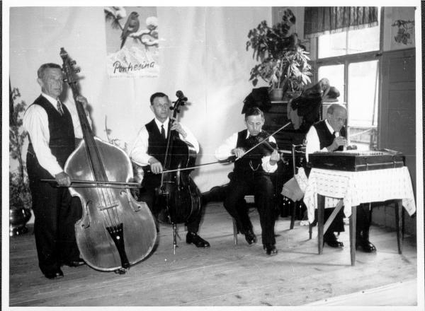 Hans Schmid war Seidenweber von Beruf und als Bassist um die Jahrhundertwende Mitglied in der «Streichmusik Wolfhalden» . In dieser Formation wirkten mit: der Violinspieler Johannes Bänziger, Grossvater von Hans Schmid junior (Schmid senior hatte den Namen der Mutter angenommen), ferner Reinhard Niederer, August Zürcher und Karl Bischofberger. Die Streichmusik Wolfhalden beendetet ihre Tätigkeit 1922. Sie wurde abgelöst von der Kapelle "Alpenrösli Lachen (AR)". Gefolgschaft im "Alpenrösli" leisteten Schmid sen., Schmid jun., Rudolf Kellenberger und Jakob Sturzenegger. Zu einem neuerlichen Stillstand kam es Mitte der 1950er Jahre.Objekte
