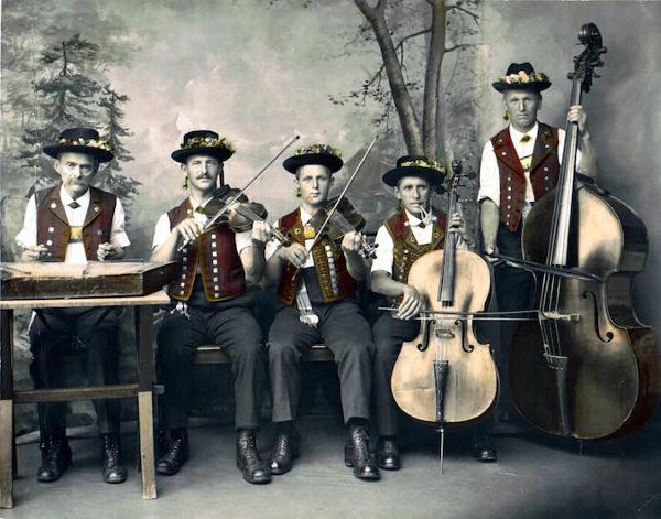 Zusammenspiel mit Streichmusik Rehetobel, Fürstenauer gespielt bis ca. 1930, spielte vorher mit Johannes Altherr 1871-1917 hatte das Höllmeyer Cello von 1753 mit Löwenkopf (heute Bänziger)Objekte