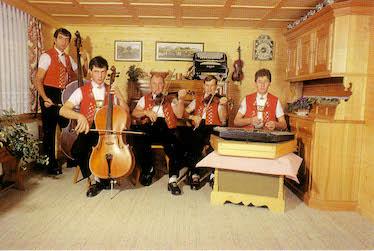 Zusammenspiel mit Kapelle Alphöttli, Warthbuebe (Anton Rempfler, Brigitt Rempfler) und Adolf Kugler, Bass.Objekte