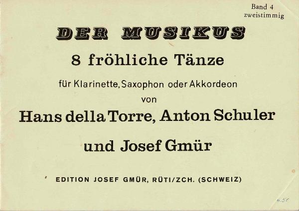 Anton SchulerInstrumenteVioline Klavier KlarinetteOrteSchwyzObjekteBim Kaffi Pflümli, Schottisch einzelnes Notenblatt Mus 2 JG 2Der Musikus, Band 4 Mus 2 JG 2Gute Freundschaft, Marsch-Fox einzelnes Notenblatt Mus 2 JG 2