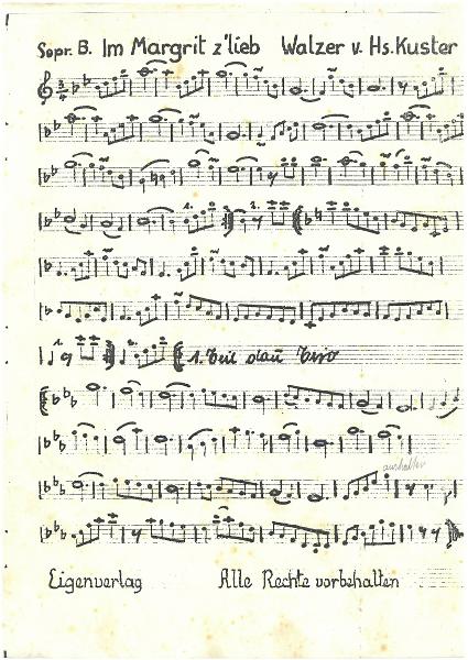 Ich kannte Hans Kuster persönlich. Im Jahr 1963 spielten Kurt Müller (/Akkordeon) und meine Person (Klavier) mit ihm im Sommer 1963 im Restaurant Alpenclub in Engelberg. Wir beide waren damals Mitglieder der legendären Kapelle Hans Aregger von 1961-1965. Hans Kuster engagierte uns ad hock für eine Tanzabend, ich weiss nicht mehr um welche Kilbi es ging. In Engelberg gibt es u.a. die Horbis Kilbi Espen-Chilbi . Hans Kuster wurde an diesem Abend recht gefordert. Die in guter Stimmung Tanzenden verlangten nach einer Tanzrunde (meistens 3 Musiktitel) Hans "no eine" es wurden teils bis zu 6 Musiktitel von uns aufgespielt, bis doch die Tanzenden wieder mal sitzen wollten. Hans Kuster war wirklich überaus kollegialer Typ. Eines möchte ich hiermit festhalten. Alois Schilliger, Gründer der Kapelle Heirassa, engagierte Hans Kuster als Bläser für die erste Serie Schallplatte der Kapelle Heirassa, folgende Musiktitel hat Hans Kuster brillant bespielt. Am Akkordeon begleitet hat der virtuose Akkordeonist Walter Grob. Heirassa (Polka) Justi tanzt (Polka) Küefer’s Toni (Foxtrott) Onkel Dagobert (Schottisch) Schwarze Füsse (Schwarze Späte Liebe (Walzer) Quelle: Meinrad Grüniger 10.9.2021Objekte