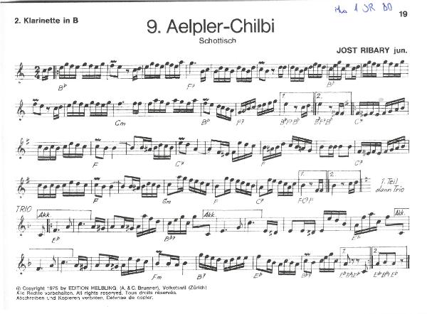 Open in new tabOpen in new tabOpen in new tabOpen in new tabAelpler-Chilbi, SchottischJost Ribary jun., Komponist:inEdition Helbling, Verleger:inInventarnummerMus 1 JR 80 Gattungeinzelnes NotenblattBesetzung1. Klarinette in B